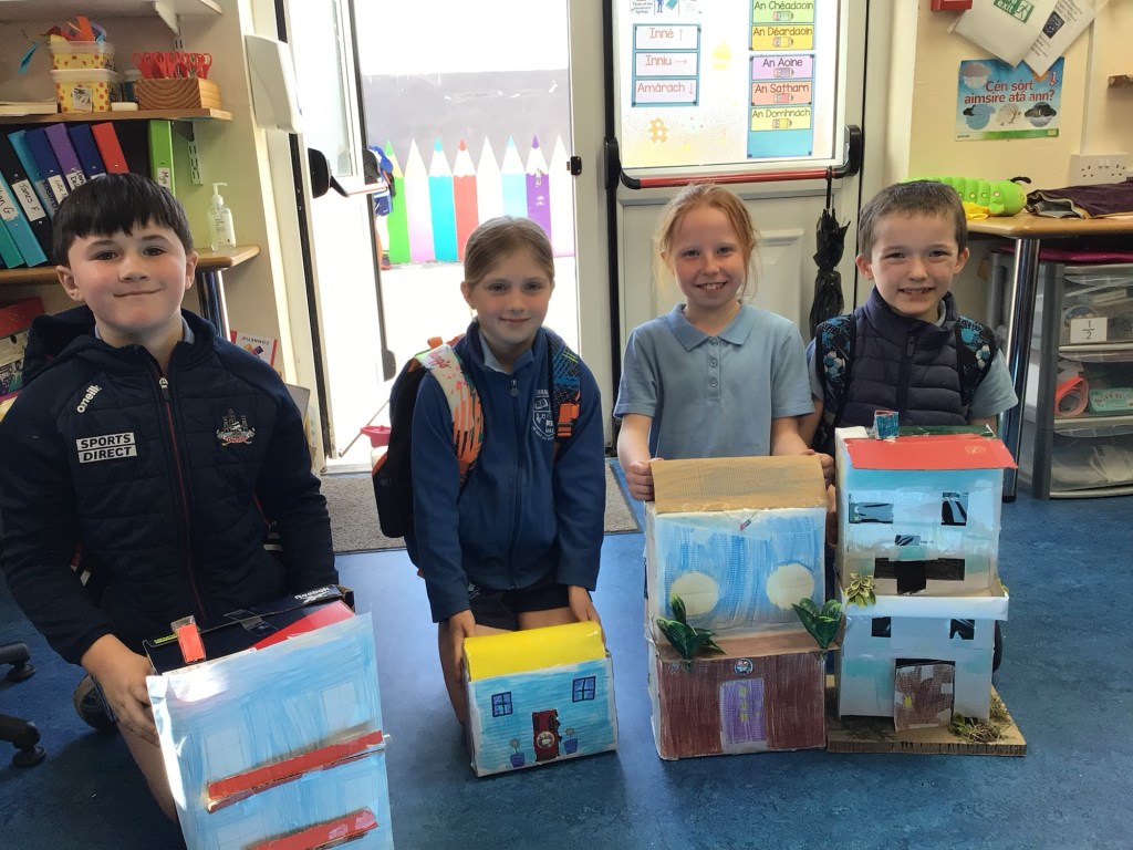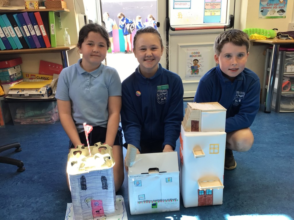 Check out our middle room’s mini houses. Great projects in STEM using science and engineering along with some creativity. Maith sibh a pháistí!