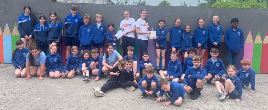 Today we presented Ciara and Sophie with €195, raised by our school in support of th Hope Foundation. We wish them both well on their trip to India next year. Maith sibh beirt!